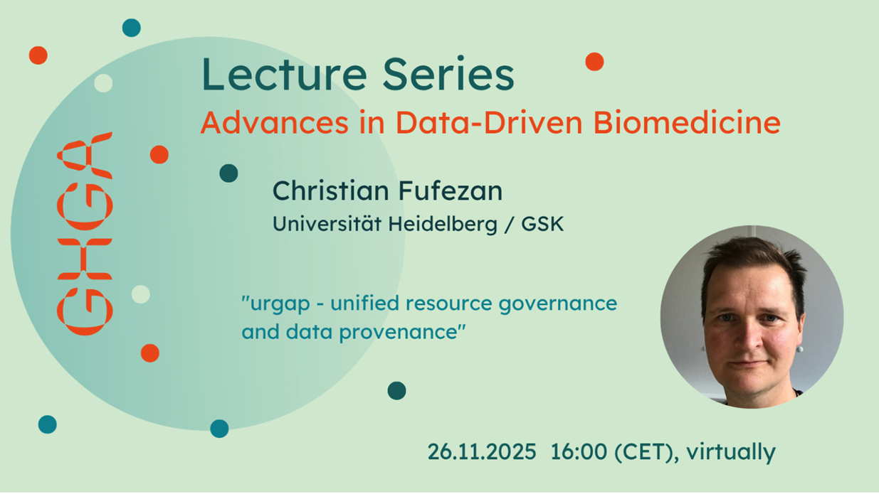 Christian Fufezan from the University Heidelberg and GlaxoSmithKline will talk at the GHGA lecture series "Advances in Data-Driven Biomedicine" about “urgap - unified resource governance and data provenance”