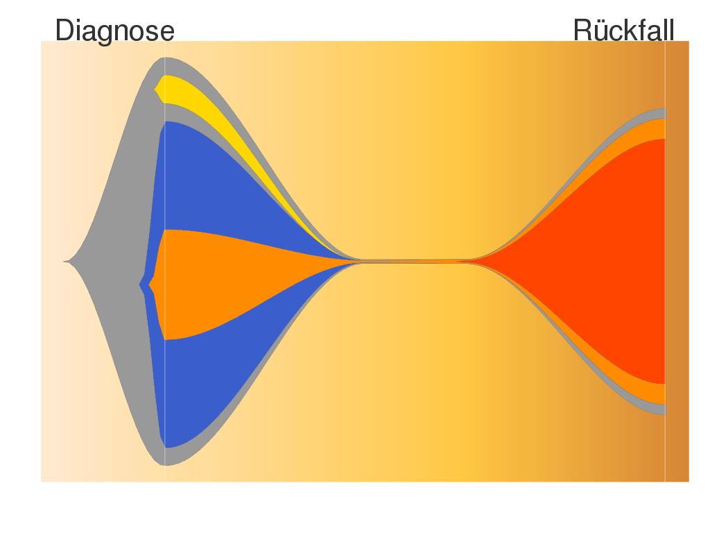 Den frühesten Rückfall erlitten allerdings diejenigen Patienten, deren Leukämiezellen keine wesentlichen genetischen Veränderungen im Krankheitsverlauf hinzugewannen. „Das ist für uns ein Hinweis darauf, dass es bereits vor der Behandlung einen resistenten Klon gab, der sich während der Behandlung erfolgreich ausbreiten konnte“ erläutert Philipp Greif.